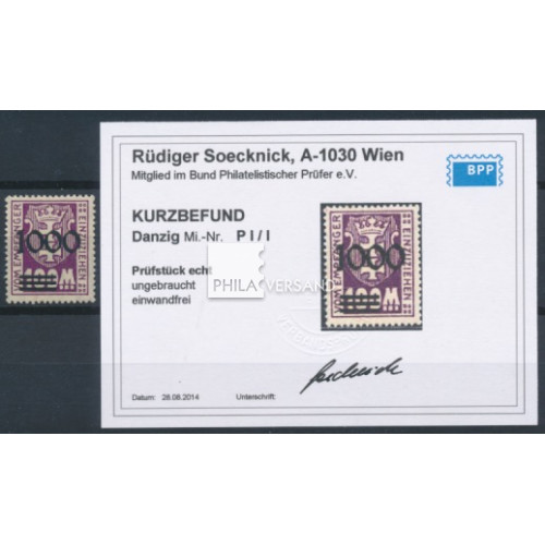 coat of arms 1923 - 1000 on 100 Mark as unissued stamp in perfect mint linghtely hinged quality, certificate by Soecknick, BPP