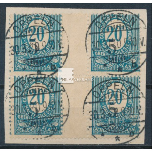 numerals 1920 - 5 on 20 Pfennig in two horizontal gutter pairs in perfect used quality on small piece, each one with the types I/II