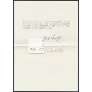 Postage stamps 1906 - complete overprint series with watermark, apparently these were once completely on a large-format registered letter (now as pieces cut), used as follows: Michel # 34und 35 each value level in 2 horizontal pairs (once upper margin, once margin corner !!), Michel # 36-37 in horizontal pairs from the upper margin of the sheet, Michel # 38-40 in horizontal pairs from the upper right corner of the sheet, Michel # 41 horizontal pair from the upper margin of the sheet, Michel # 42 in the horizontal pair from the lower right corner of the sheet, Michel # 43 Single stamp from the lower left corner of the sheet, Michel # 44 from the lower margin of the sheet and Michel # 45 from the lower left corner of the sheet. All stamps are canceled Mogador with inscription Morocco (this with KK), whereby the already better postmark with the following stamps still another additional multiplicate lt. Michel receives: with Michel # 34-37 and 39 sixfold Michel prices, with Michel # 40 and 43-45 double prices. All values are expertized by Pauligk, BPP, the piece with the transverse formats with certificate of Mr. Pauligk, BPP. Taking into account the o.g. Multipliers results in a catalog value without surcharges for upper margins or corners of at least 3,000 euros. Great offer, which probably represents a unique.