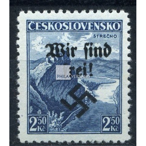 overprint 1938 - 2,50 Crowns stamp Strecno in perfect mint never hinged quality