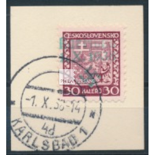 Karlsbad 1938 - 30 Heller stamp in perfect used quality on small piece