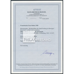 Freiburg Blockpaar 1949 - ausgezeichnete gestempelt Erhaltung mit Sonderstempeln aus Konstanz zum Edeka-Verbandstag und mit Attest Schlegel, BPP