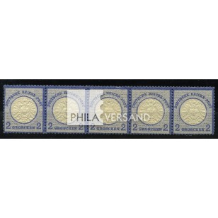 2 Groschen großer Brustschild 1872 Fünferstreifen - waagerechten Fünferstreifen, gute postfrische Erhaltung, gut gezähnt und sehr gut geprägt, zwischen erster und zweiter Marke von links angetrennt (deshalb nur als Vierereinheit mit loser Marke bewertet!)