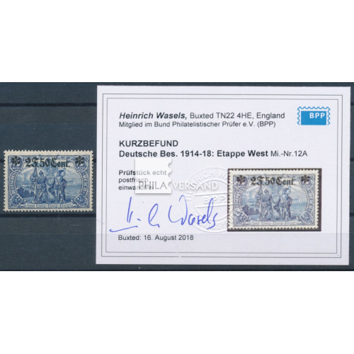 Aufdruck 1916 - 2 F 50 Cent auf 2 Mark in besserer Type, einwandfrei postfrisch und mit Befund Wasels, BPP