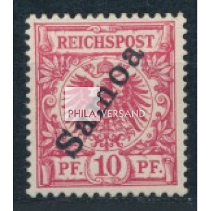Adler 1900 - 10 Pfennig in besserer Farbe und mit schrägem Aufdruck Samoa mit minimaler und kaum erkennbarer Falzspur (Marke wirkt postfrisch), entsprechend für Falz doppelt tiefst geprüft Jäschke-Lantelme, BPP