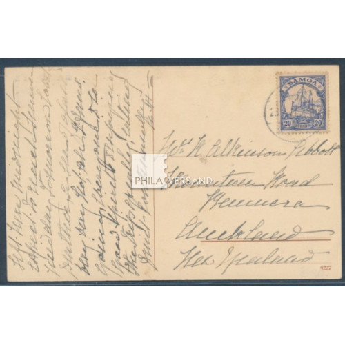 Yacht 1911 - Ansichtskarte mit sehr gutem Motiv " Greetings from Friendly-Islands " und frankiert mit 20 Pfennig Yacht und lesbar entwertet " Apia 23.7.11 " gesendet mit Kartentext nach Neuseeland, Karte am oberen Rand ganz minimal wellig, ansonsten in ausgezeichneter Erhaltung und nahezu völlig ohne die sonst üblichen Beförderungsspuren