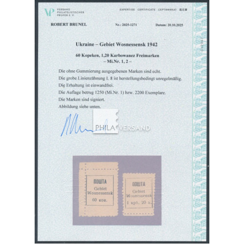 Freimarken 1942 - wie verausgabt ohne Gummierung in tadelloser Erhaltung und mit Expertise Brunel, VPEV