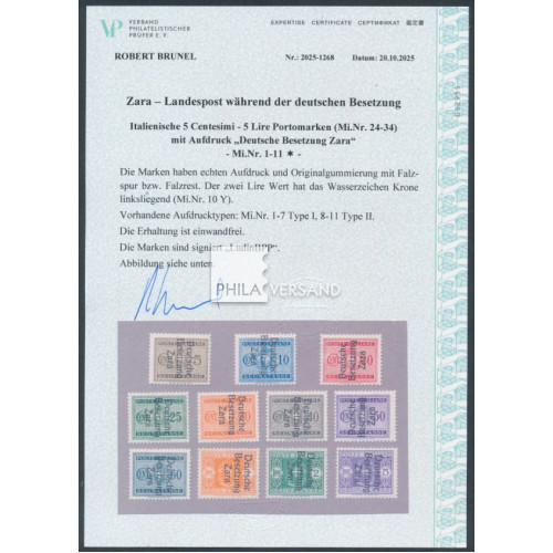 Portomarken 1943 - kompletter Satz in ausgezeichneter ungebrauchter Erhaltung mit Expertise Brunel, VPEV, ein sehr seltenes Angebot
