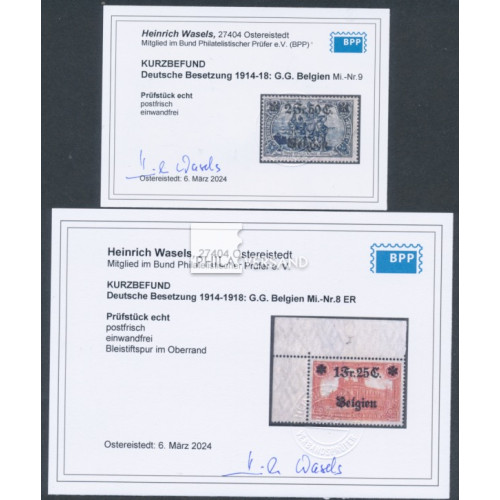Aufdruckserie 1914/1916 - einwandfrei postfrisch, Michel# 5 tiefst geprüft Dr. Hochstädter, BPP, Michel# 8 (Bogenecke!!) und 9 jeweils mit Befund Wasels, BPP