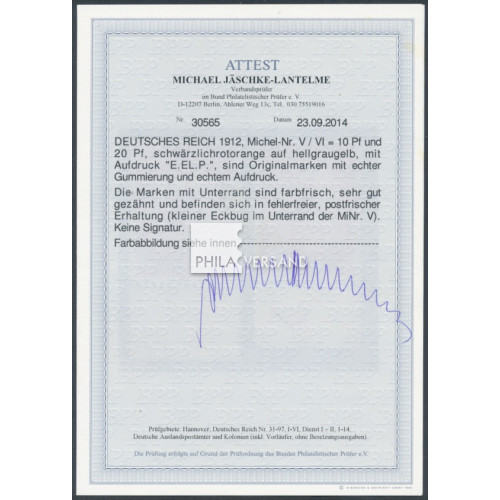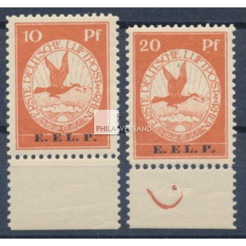 Flugpostmarken 1912 - seltene E.EL.P. Aufdruckserie einheitlich vom unteren Bogenrand und in perfekter postfrischer Erhaltung völlig ohne Signaturen, Attest Jäschke-Lantelme, BPP