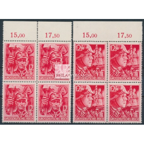 Parteiorganisationen 1945 - einwandfrei postfrisch und völlig ohne Signaturen in Viererblocks vom oberen Bogenrand