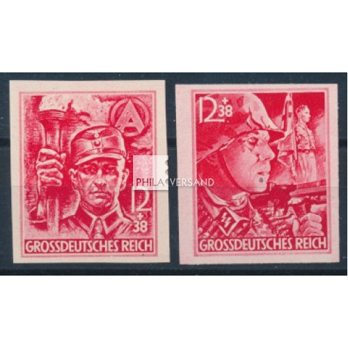 Parteiorganisationen 1945 - ungezähnt und einwandfrei postfrisch, Michel# 910 mit vorderseitig erkennbarem und herstellungsbedingtem Papiereinschluss, beide Werte tiefst geprüft Schlegel, BPP