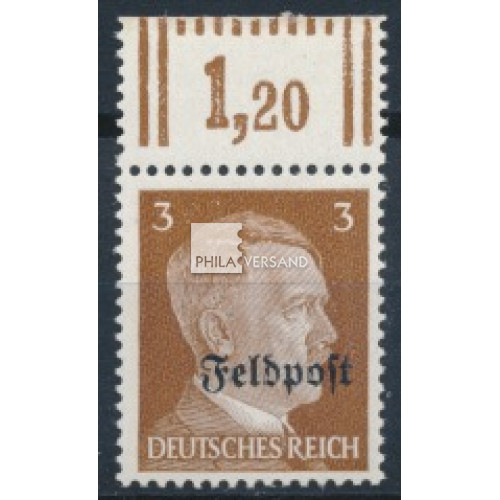 Ruhrkessel 1945 - 3 Pfennig mit Aufdruck Feldpost einwandfrei postfrisch vom oberen Bogenrand (dort ganz oben minimale Erstfalzspur) und tiefst signiert Pickenpack