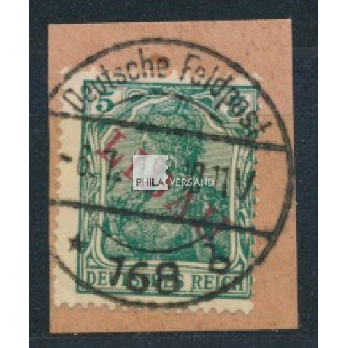Notausgabe für Libau 1919 - 5 Pfennig mit rotem Aufdruck in Type II, sauber gestempelt auf kleinem Briefstück und tiefst geprüft Dr. Hochstädter, BPP
