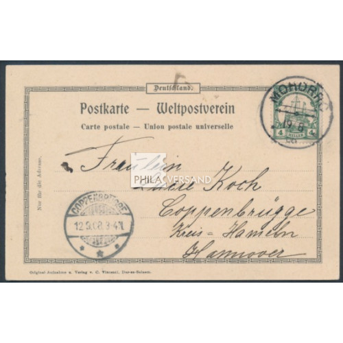 Yacht 1908 - 4 Heller Yacht mit Wasserzeichen als Einzelfrankatur auf Ansichtskarte, ausgezeichnet und nahezu zentrisch entwertet " Mohorro 19/8 08 " auf wunderbarer Ansichtskarte mit tollem Motiv " Mohorro " mit zwei Einzelbildern (Strassenpartie und Kais. Post- und Zollamt) gesendet mit sehr viel Kartentext nach Coppenbrügge (Ankunftstempel), sehr gute Bedarfserhaltung mit üblichen Beförderungsspuren