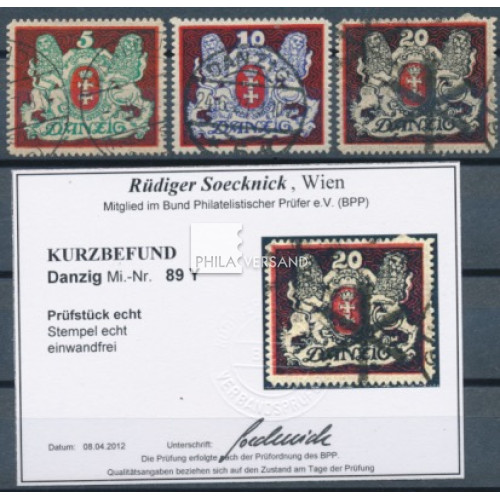 Staatswappen 1921 - sehr gute gestempelte Erhaltung, mit liegendem Wasserzeichen, Michel# 87 tiefst geprüft Soecknick, BPP, Michel# 88 geprüft Infla Berlin und Michel# 89 mit Befund Soecknick, BPP