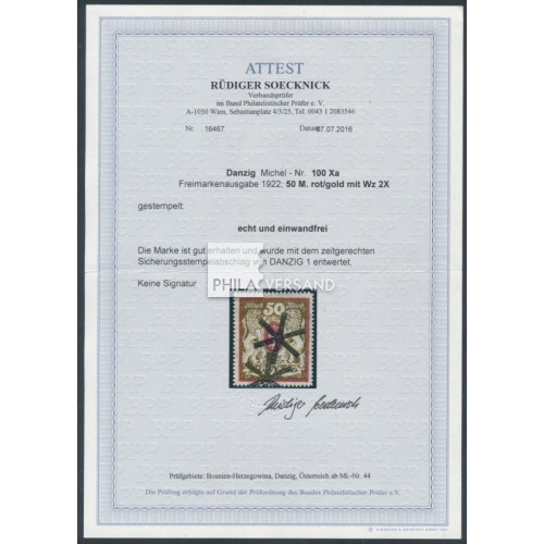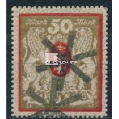 Staatswappen 1922 - 50 Mark in seltener Type mit stehendem Wasserzeichen und einwandfreier gestempelter Erhaltung, Attest Soecknick, BPP
