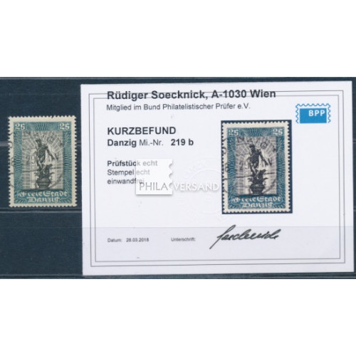 Neptunbrunnen 1929 - 25 Pfennig in guter Farbe, ausgezeichnete gestempelte Erhaltung mit normalem Tagesstempel aus Danzig und mit Befund Soecknick, BPP