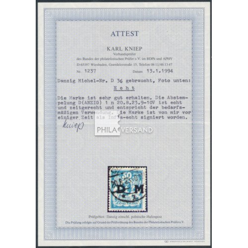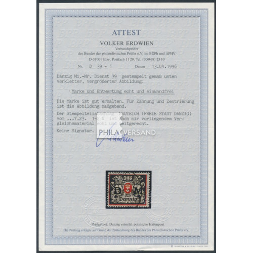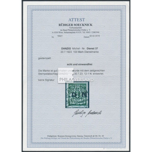 Wappen 1923 - sehr gute gestempelte Erhaltung, die seltenen Michel# 36, 37 und 39 mit Attesten Kniep, BPP, Soecknick, BPP und Erdwien, BPP, Michel# 40 mit Befund Soecknick, BPP und Michel# 38 geprüft Infla Berlin, im kompletten Satz nahezu nie angeboten