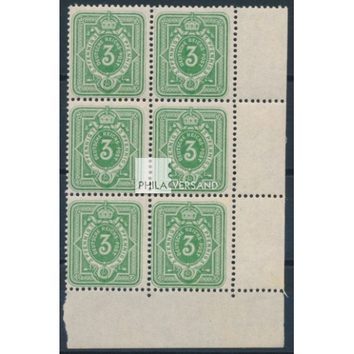PFENNIG 1886 - 3 Pfennig in Spätauflage als einwandfrei postfrischer Sechserblock ohne Signaturen aus der rechten unteren Bogenecke (auch die Ränder postfrisch und ungefaltet)